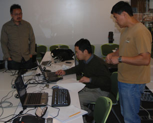 Set up and practice with the test rig (L). Getting ready to open the test lab door at the conference (R).